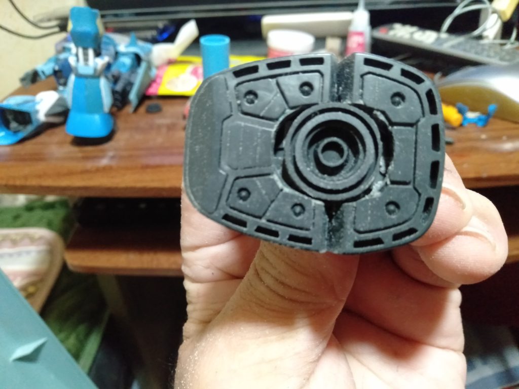 MGグフVer2・0改造 グフカスタム改造進行状況、ここ最近は下半身の調整ばかりでした。MGグフVer2・0には足裏にバーニアがありませんので、創りました。しかし足の形状が想ったよりも中々俺が描く様な形状に在らなくて苦戦してますね?、ホント難しいわ。(*´Д`) スカートの形状も、グフカスタム特有の形状に。脇のスカートのは、前後1~1・5mmの切れ込みを入れて、前は縮めて再接着し後は1~1・5mm広げてプラバンやSSPパテで整形しました。 シールドは最初、MGグフVer2・0を使用する予定でしたが某作中ではグフカスタム用の小さめのシールドだったので断念。 (*´Д`)ホント今月中に終わるんだろうかなぁ?