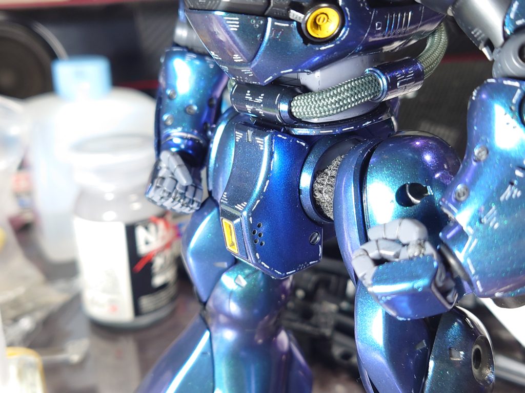 ケンプファーの腰部に、ここまで気合い入れて作成することも、もうないだろな( ̄▽ ̄;) 前面は対弾性の都合でブチ穴は無しで。側面や下部は放熱重視で穴だらけ。ラジエターらしきものもチラリと。ディティールは上半身に合わせて、マイナスモールドを追加。相変わらずスジ掘り系ディティールはゼロですが(⌒-⌒;
