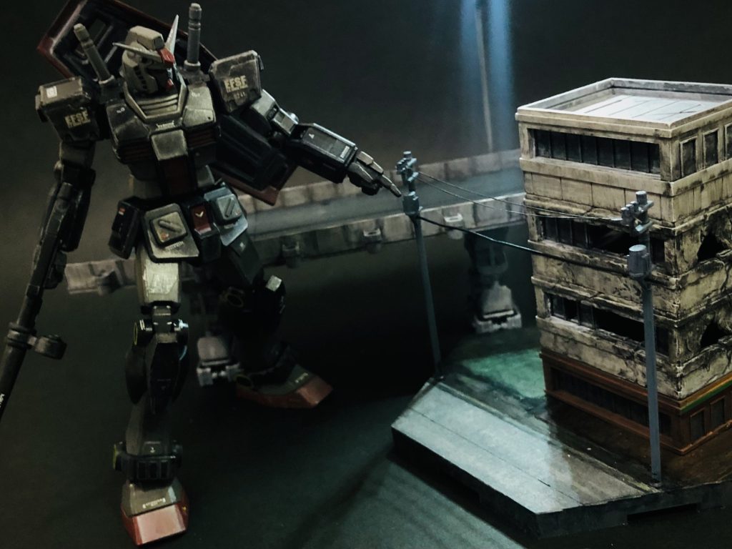 電線(釣り糸)と光ケーブル線を付け忘れてましたので、夜景で撮影しました🌃 🔦ライトは ヘキサギアの夜襲時 上空ヘリ🚁のときに、スマホ📱レンズに小型照明を近づけたら、ルパンを照らすみたいな演出が出来るのを見つけたので、高速道路の電灯演出しました😊