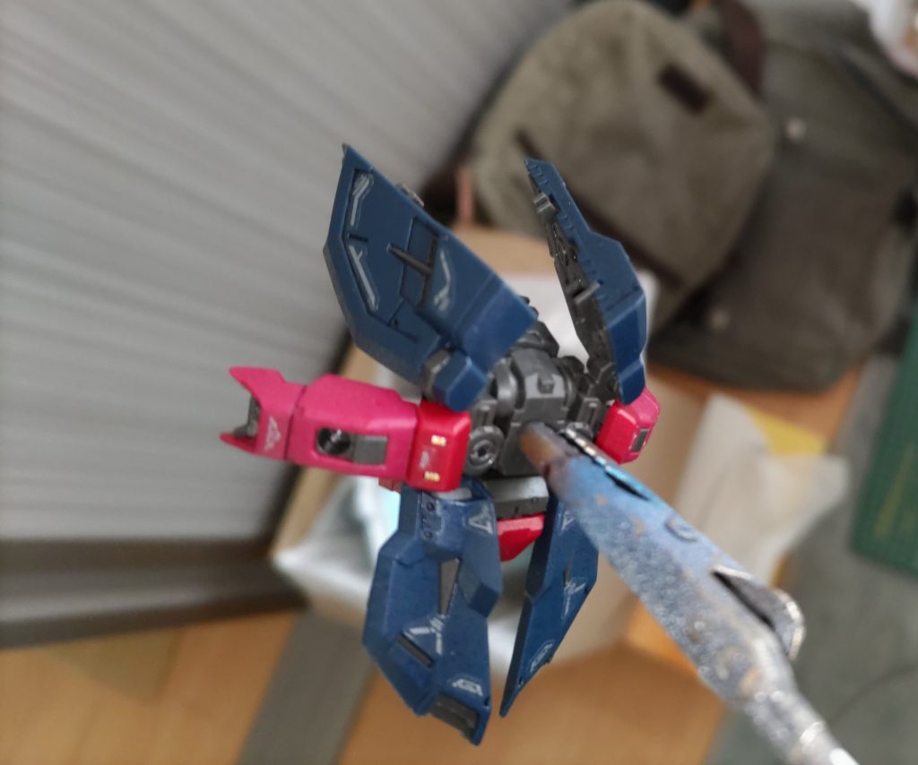 ガンダムXディバイダーを素組、少し塗って作りました。 青の色…