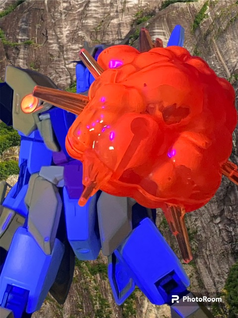 自作ではなく30mmの爆発エフェクトパーツです。実は自分も存在をしらなくて、たまたまアースリィを買った店で数点あっただけ。聞いたら再販もされてないとのことで、買ったときの金額は税込580円です^_^