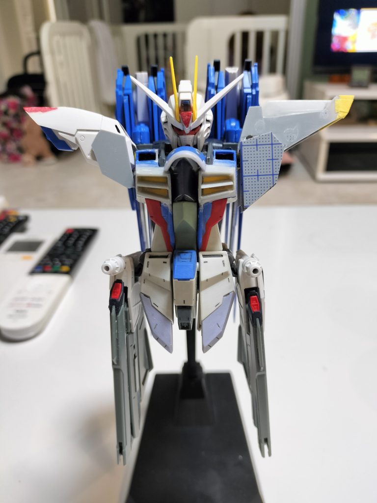 一番くじA賞のフリーダムガンダム胸像 マーカーで墨入れ、部分…