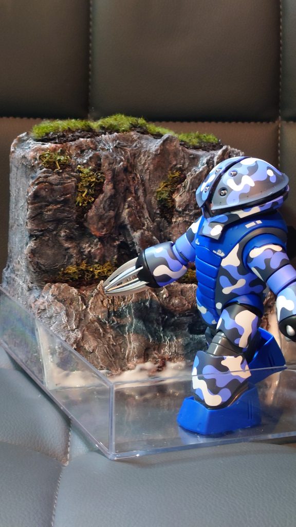 あとはレジンを流し込むので、崖裏に流れ込まないように流れ止めをしました。