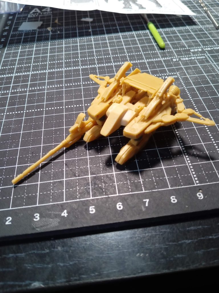 Gディフェンサー形態に変形できるようになりました。いやーサイドポンツーン多分こうかな?前の投稿の状態にパーツ付けたら、回転させないといけないという(このバーみたいのランディングギアと仮定して)右はアームのギミックのため回転はできるので、左を切断し、回転できるように加工。右はアームが邪魔になるので、さらに関節可動箇所増やして回避。いやー大変ですわ💦うん、ここも何言ってんだかわからんと思う!なんか大変ぐらいでスルーしてw