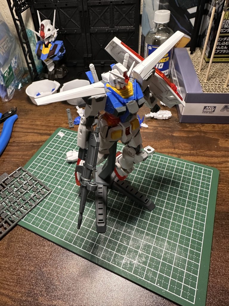 素組みでも完成度高いガンプラですね! 足と肩あたりの可動域が…