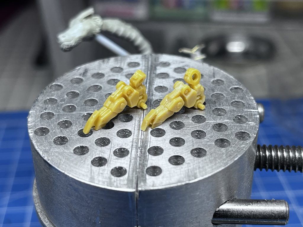作り始めたアーティファクトパラス・アテネにおけるマイインポータントチャレンジングポイントである合わせ目消しの解説、というかこれやりますという決意表明です。画像は足首、左が未加工、右が加工済み。