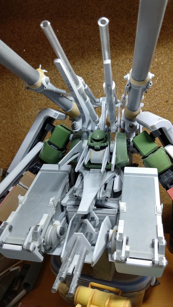 おおよそ砲撃専門のザクタンクになります。あまりにも巨体で狙われるので、重装甲を纏って、各部、被弾してもトカゲの尻尾のように切り離して戦線から離脱できるよう、装備や腕を爆発ボルトで廃棄できるつもりです。