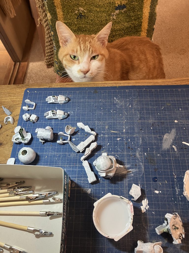 家もガンプラ制作していると、「構え」と背中に前足をポンとしてきますw
