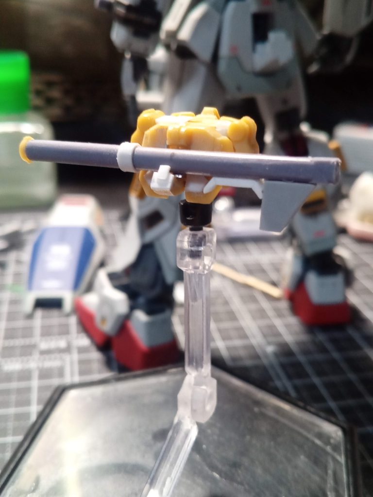 バズーカは、ランナーとプラ板でスクラッチの途中。他にシールド、ライフル、バルカンポッドも制作中。もう少しで完成できるかなと。