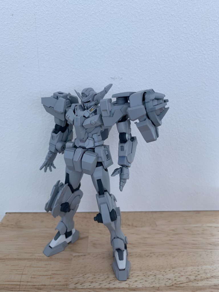 ガンダムアストレアタイプFをベースキットとして、とガンダムエクシアのパーツ、ダブルオーの腕と足を移植し、デュナメスのパーツを流用しながら、形状が違う部分は、プラ板を切り貼りして、素体を完成させました。