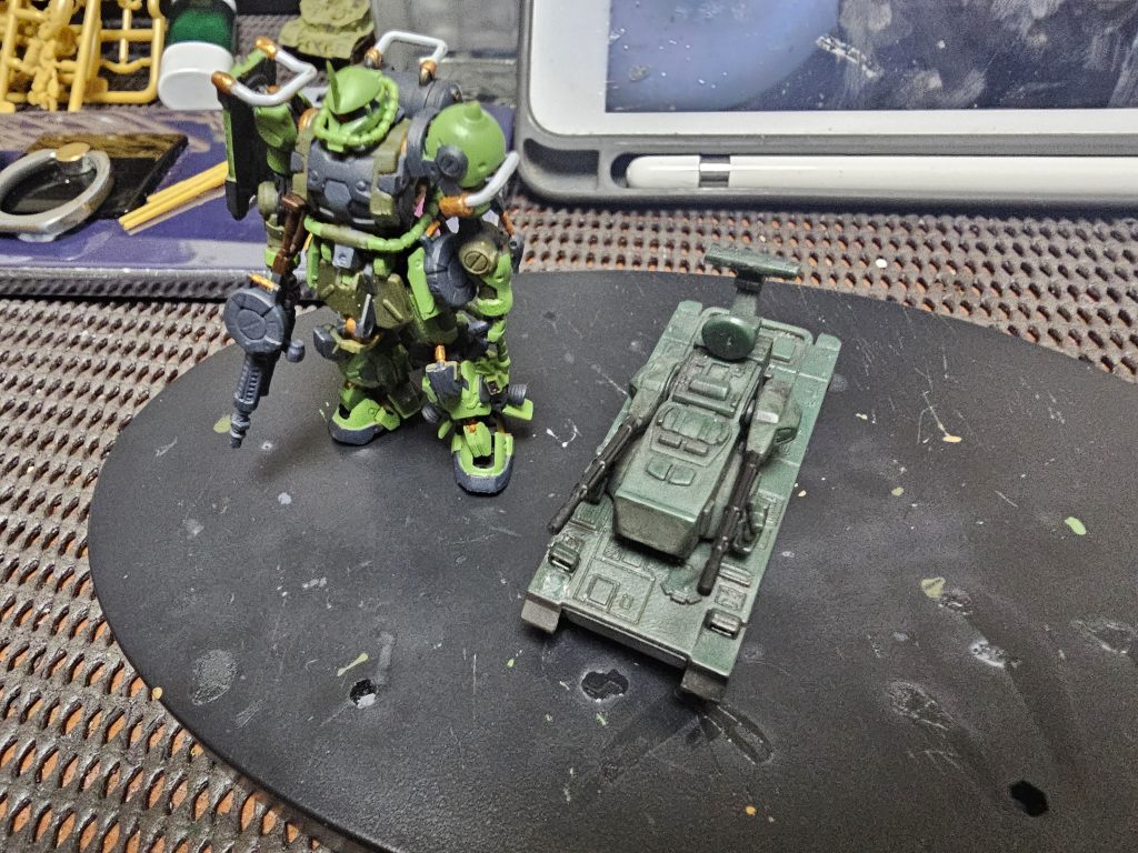揚陸作戦ジオラマにザクタンクを追加するか検討中。多分揚陸作戦で空中戦が発生した場合連邦が制空権を握る可能性が高そうなので対空マシマシ、対要塞戦闘のキャノンを背中に追加しようかと。ただ高機動型ザクをベースに使うのがちょっとなぁ。漫画のザクタンクみたいにしたいのはある。