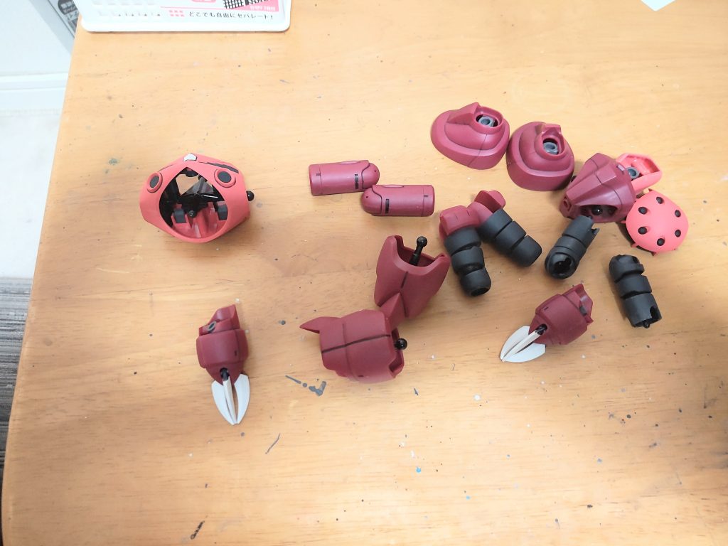 ズゴック、ポリキャプ部にパーマネントマットバーニッシュ塗布、ボールジョイント部は、つや消しトップコートすれば少しはふにゃふにゃが解消出来るかと🤔。ただ、朝から雨でステイメンのトップコートは、本日もお預けかと😓。