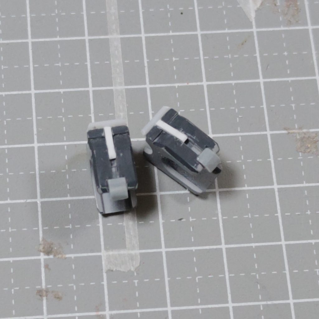 既に塗装に入ったのですが、ふと膝のポリキャップをカバーするパーツが気になって、手を入れてみました。キットのままだと、いかにもプラモデル然としているというか、複雑な機械が動くようには感じられなかったんです。この辺はやはり初期のキットですね。