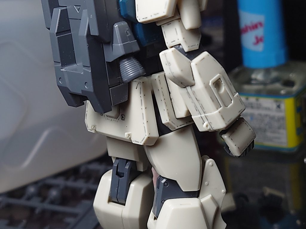 Ez8の胸部は特徴的で、いかにも追加装甲というのが好き。陸戦らしいフックがいいのです。と、言いことで追加フックをしていきます。ランナータグを加工して接着、削り出しで成形。実用的だと思う箇所はアームや腰ですかね。アームはクレーンの代用として、腰は牽引です。あと追加するとすれば、雰囲気とかノリですね。