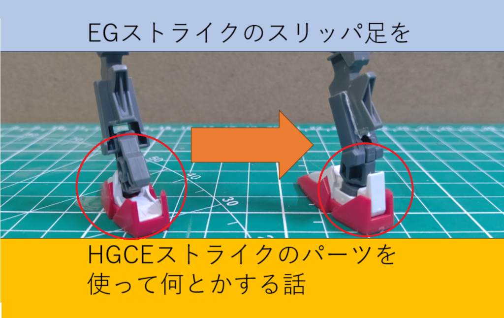 EGストライクガンダムのスリッパ足を改善する改造事例紹介です。