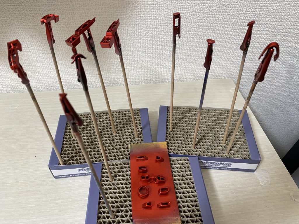 今回は赤の塗装です。艶消しキャンディ塗装です。