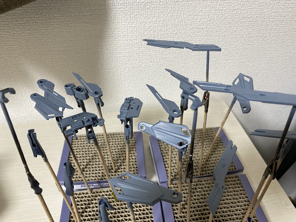 今回はレールガンやダクトなどに使うグレーの塗装をしました。