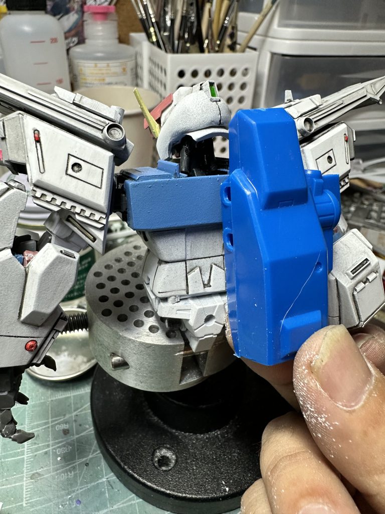 バックパックにも追加装甲を被せたぐらい大型化されてますね😃。バーニアもデカイんでしょうね😁。