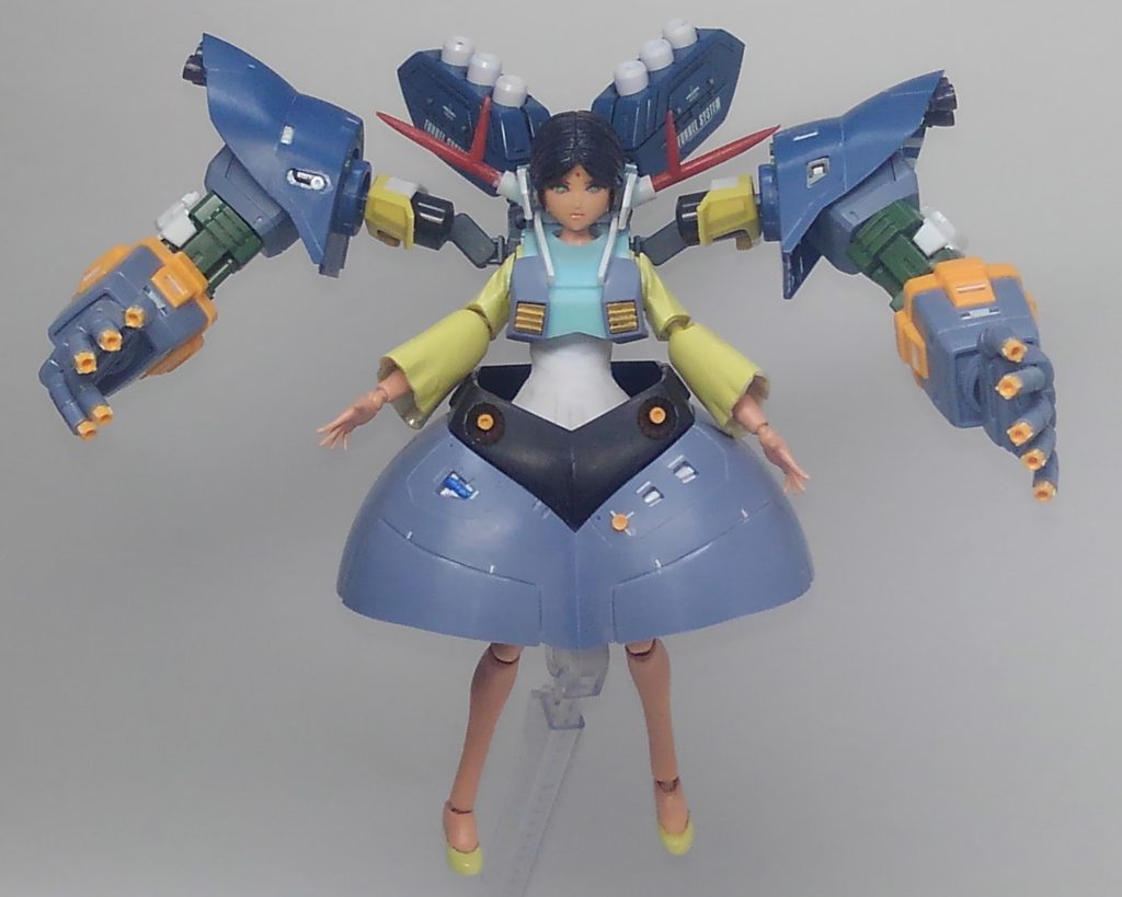 手ぶらになって、ファンネルのギミック良いですね。ヘア飾りが素敵で、操縦桿が無くても、ニュータイプとして機体を掌握できる迫力があります。もちろん、大佐が完全に制御されますね。