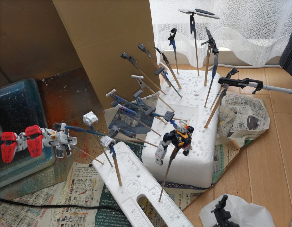 いっしー 2024.02/24更新 8 20 いいねしたモデラー(20) 0 作品を共有 マークIIのトップコート一回目終了〜。 今朝の用事終わって早めに帰ってきました😁 いつもベランダでビビりながらやって失敗するので、室内で思いっきりやりました。 かわいたら、腕と脚だけ曲げてやって、金ピカシールだけ貼らないと。 もー少しですー。 制作中 コメント コメントをして応援しよう コメントにはログインが必要です いっしー 40代の社会人です。 30代中頃から20年ぶり位にガンプラを製作しだし〇〇ガンダム中心に製作しています。 基本は部分塗装とスミ入れ、トップコートのみのパチ組モデラーです。 復活して数年経ちますが技術は上がらず凹んだりしますが、作ってる最中は楽しみながらやってます。 遅番の日の出勤前や、土曜日を中心に少しずつ製作してます。 製作意欲に波がありますが、制作報告書きテンションあげて頑張ります。 気長にお付き合いいただけるとありがたいです😣 製作傾向は多い順にウイングガンダム、ダブルオー、宇宙世紀(ユニコーン、逆シャア多め)、水星の魔女、エックス、鉄血、その他の順です。 作ったものは飾りたく、カラーボックス、キューブボックス&上段にクリアーひな壇、念願のコレクションケースと徐々に飾るところが増えましたが、手狭になってます😅 皆さまを参考に製作したものをたくさん投稿できるよう頑張りますので、よろしくお願いします。 6 リ・ガズィ逆シャア 本体一周 久々の完成作品の投稿になりますが、MGリ・ガズィ逆シャアバー… 5 ガンダムXディバイダー デカール貼り、つや消し 前回投稿してから時間空きましたが、ガンダムXディバイダーにデ… 5 ガンダムXディバイダー素組、ちょい塗り ガンダムXディバイダーを素組、少し塗って作りました。 青の色… 5 アルトロンガンダム つや消し アルトロンガンダム完成しました😂 角の安全ダボカットと、少し… いっしーさんのページ この作品をお薦め作品に設定する Please login to update your profile! Please login to update your profile! Please login to update your profile! Please login to update your profile!