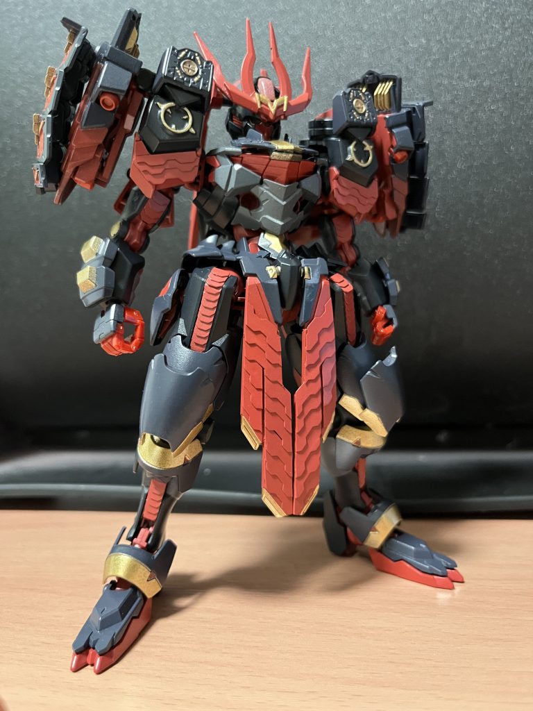 まさに鬼と武者をモチーフとしてます!カラーリングも邪戦角を意識してますw黒ベースに赤や金を入れると映える感じがするのですよ( ͡° ͜ʖ ͡°)