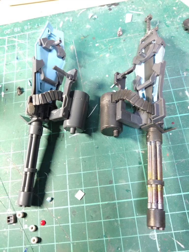 ガトリングシールド右手にも持てるように改造したのですが取り付け変更するつもりです。