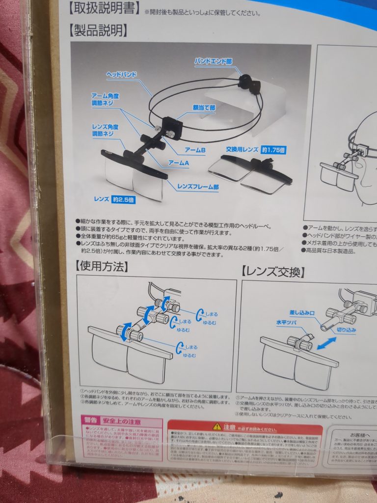 wave製のHGワイヤーバンド式ヘッドルーペを7280円税込で購入をしました。これは、良いです。左目が、見えなく年々視力が低下している右目でもガンプラのパーツが、良く見えます。試しに買ってみたけど良い買い物をしました。