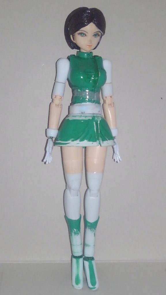 過去作のエマさんの改修を始めました。主に関節、ボディを改修し、一段落したので撮影して確認です。ミニスカートみたいになってますが、太腿も原作通り白く塗りますのでエロさは大丈夫ですw このミニスカートみたいなところは上着の一部、ワンピースなんで開いているのはおかしいのですが、脚が動かなくなるのでこのまま作成です。どうしても違和感あったら修正しますが。