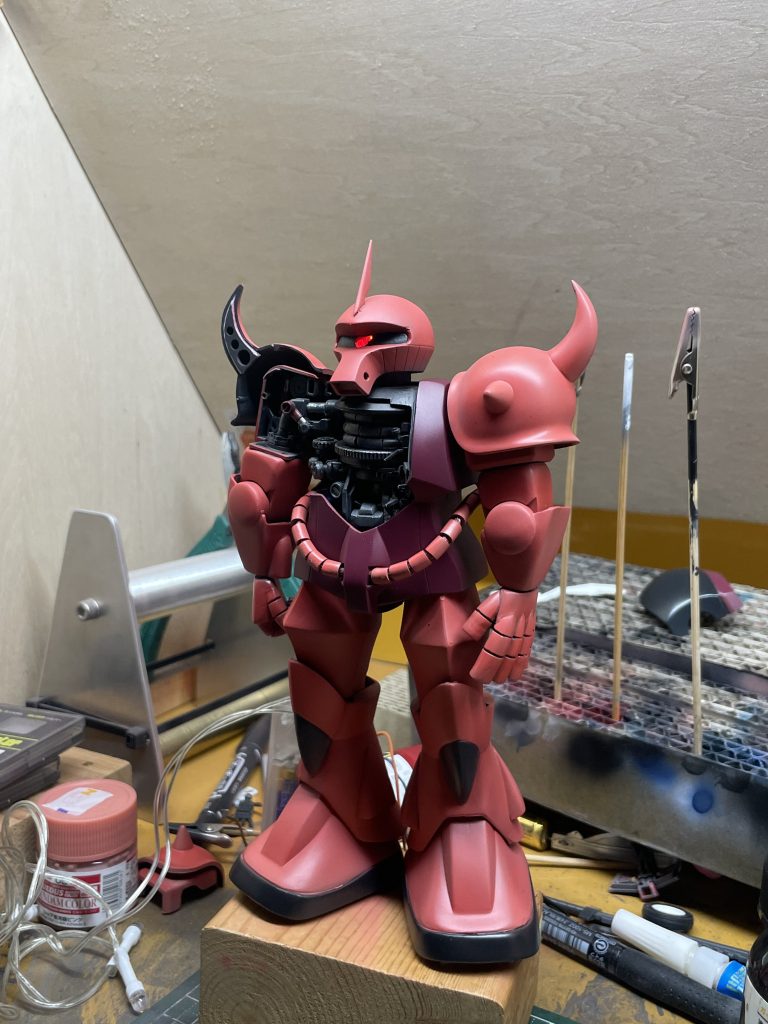 しかも今回、旧キットなんで、、組んでからのマスキング、、塗装になるんで、、モノアイとか超面倒かったです。。苦笑