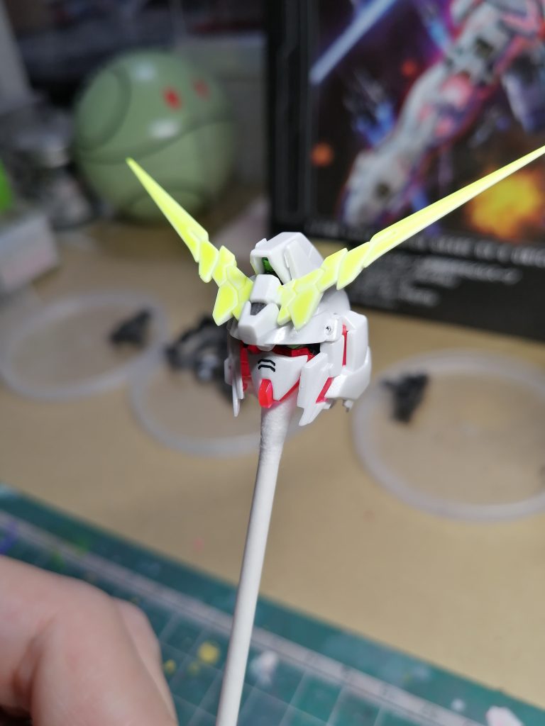 長らく積んでいたMGユニコーンガンダムの製作を開始しました。 塗装をどうするか悩んでいましたが、今回はメタリック調で塗装します。 ただし、グレーパーツ・濃紺パーツはもともとメタリック調なので、グレーパーツ・濃紺パーツは塗装しません。 白色パーツをパールホワイト、ピンクのサイコフレームをパールクリアーで缶スプレーで塗装します。 ピンクのサイコフレームはもともとUVカラーで発光するので、MG史上最高のUVライト発光をめざします。 先に塗装に手間がかかる頭部を製作しました。 ツインアイ・頭部カメラは蛍光グリーン、頭部アンテナを蛍光イエローとパールクリアーで塗装しました。写真ではわかりにくいですが、白色パーツをパールホワイト、サイコフレームをパールクリアーで塗装しています。キラキラ感を出しています。 美しいユニコーンガンダムをめざします。