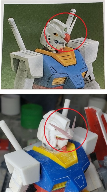 頭部のアンテナは、写真の形状を再現するために作り起こしました。