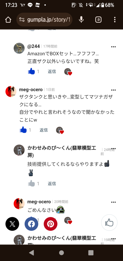おー!いいですね〜!こうなったらバーニアも用意してタコザクも目指しましょう!笑 なんて😁