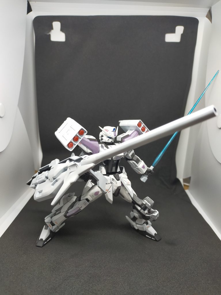 てことで、一部武装類をSTRIKEにつけてみました。前回の画像にはないものもちょいとついてますので、イメージは変わってます。にしてもEGストライクの保持力がすごいのか、加工がうまく行ったのか、特別な支え無しで特射砲が持てます。それとシンプルなビームサーベルを作って、やっぱこれだよなと思いました。