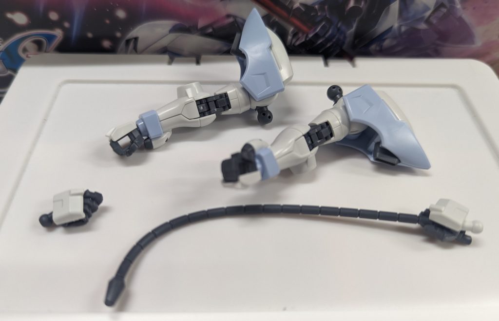 設定上グフの後継機なのでスレイヤーウィップがつくのはいいのですがデザイン上左腕にも鞭が内蔵されてるのに付属が右腕だけなのはちょっと残念、あと肩の内部とアーマー横に合わせ目が発生パーツのはさみ込みがあるため塗装派的には中々消しにくそうな場所な気がします、段落ちとか彫ったほうがラクかも…。