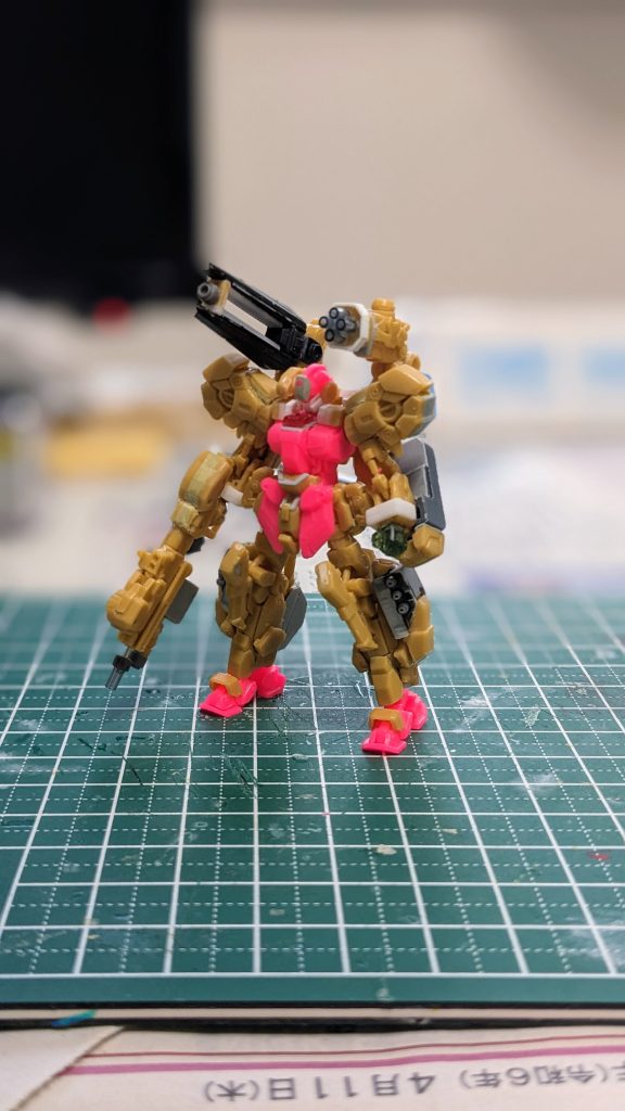 アーティファクトジェスタキャノン続きです!下半身を盛りました✨問題の脚のハンドグレネードはwaveのアフターパーツでそれっぽく💡アーマーもプラ板で増量してます。分かりにくいですが、顔の右側にはバルカンポッドも付けてます👍️後は各部もう少しディテールアップしてサフ吹きたいです!