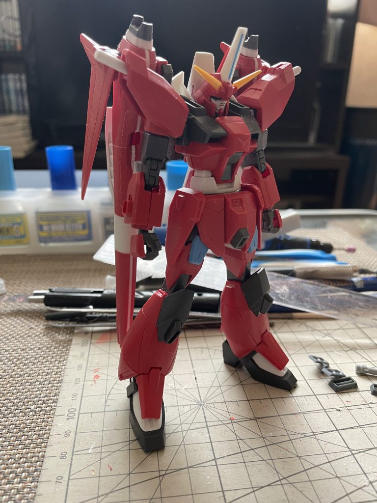 とりあえずスタイルをHGCEに合うように可動範囲改造しているのと、形状を1/100に寄せてます。頭部触るだけでだいぶ印象変わりますね。アムフォルタスの延長が大変でした。
