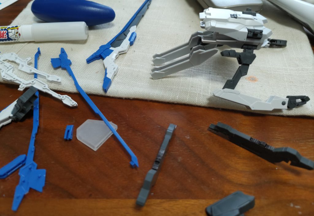 ガンダムXディバイダーを素組、少し塗って作りました。 青の色…