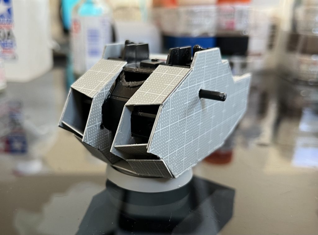 荒削りではありますが、作業を開始して流れのコツを掴んだ様に思います。目盛付きプラ板のおかげか前回のガンタンクよりも型取りや微調整が楽です😊