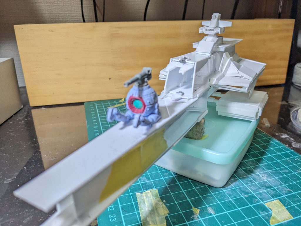 Kino.P 2024.06/20更新 ラータテニナッチャター 176 27 いいねしたモデラー(27) 0 作品を共有 1/1200スケールラータテニナッチャターの進捗です。 艦橋周りを造り込んだのでだいぶ「 らしく」なってきましたね。今回はPS版( ?)なのでハッチ解放が出来、MS格納庫内部や1/1200スケール89式ベースジャバーも付属します。 いやぁさすがにPS版( WAVE的に)。俺はPSなのか…( キリコ的に)。 本当のベースジャバーはもっとデカいのですが、格納庫的に容量がなく止むなくこのサイズ。ラーチャターの格納庫容積的な意味でヤヴァいっす。 8月には出来るかなぁ…。 制作中 ラーチャター ラータテニナッチャター 何やってんの!? フルスクラッチ コメント コメントをして応援しよう コメントにはログインが必要です Kino.P Hello! I am a japanese modeler. Please take a look at my works. Please also send me your comments! Thankyou! アマチュアのモデラー、カーラー、たまにネット小説家。スウィープ力(スウィープちからと読もう)維持の為筋トレは欠かしません。得意は脳内逆シャアBGM再生からのサウスポーテイクショットだが命中率はクワトロのメガバズーカランチャー並(プレッシャーで当たらない)。遠い将来、ガンダムファイターとしてカーリングガンダムで出場未定。三度の飯より鋼鉄の塊が好きでそっち方向へ尖り腐る。自称当方腐敗。ガンプラよりも料理のフルスクラッチに定評がある(つまりガンプラの才能は無い)。 10 『1/1200スケールフルスクラッチ ムサカ級4番艦 キャメ… 天誅!! ネオ・ジオン万ッッ歳ッッ!!! でっっでーででーで… 10 『1/1200スケールフルスクラッチ ラー・チャター』 チェーン「原因はなんなんです!?9月に完成しなかった原因は?… 8 『To The Victory!』1/100スケール旧HG … で~⤴で~⤴で~⤴で~⤴でん♪でれれれれれ♪でれれれれれ♪ … 5 『実験部隊艦長の憂鬱☆こんなんどう扱えって言うんだ』 1/1… さて。第1部に引き続き第2部では「アレキサンドリア級」につい… Kino.Pさんのページ この作品をお薦め作品に設定する Please login to update your profile! Please login to update your profile! Please login to update your profile! Please login to update your profile!