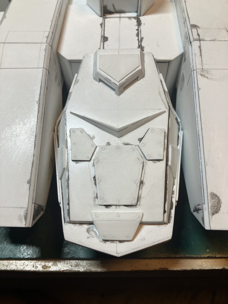 ホントは全部凸でやりたかったんですが、凸で表現すると穴開けて伸ばしランナー作ってライターで炙るのが大変だと思って、凹仕上げの、この工具を選びました