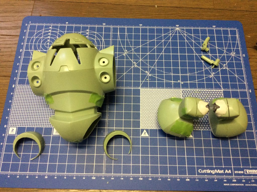 モノアイは、とりあえずHGのようにレールに挟み込むイメージでおりますが、大変そうな上に2組必要なので、途中で諦めるかもです(笑)