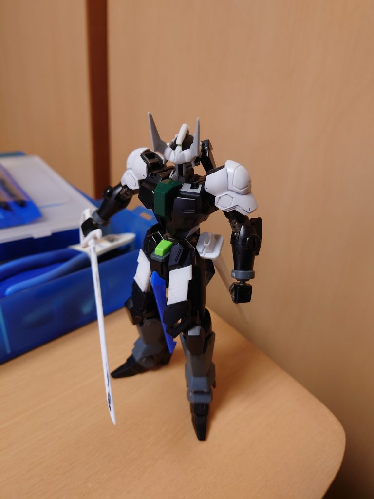 サーベルと鞘は一から製作していたんですね。さすがに苦労した甲斐があって、完成した作品を見たとき、格好いい出来映えでした。私は、てっきりRジャジャやプレバン販売のガンダムW G-UNITのレオス等から加工したのかと思っていました。