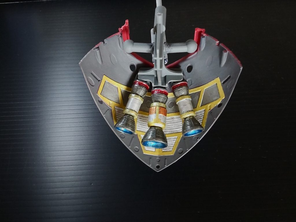 お疲れ様です😊 おぉ~キレイ✨👀✨ バーニアの数ですが 自分は 3 基派です😤 ノーマルのゲルググはサホド気に成りませんが「マリーネやイェーガーはDONだけバーニア付いてんだ❗」 と キットを弄る度に考えておりました🧐コンナニ有ったら「推進剤が直ぐ無くなるし危ないだろう」 と 😩 まぁ、カッコいいで済ませられる処も在るんですけどね🤗