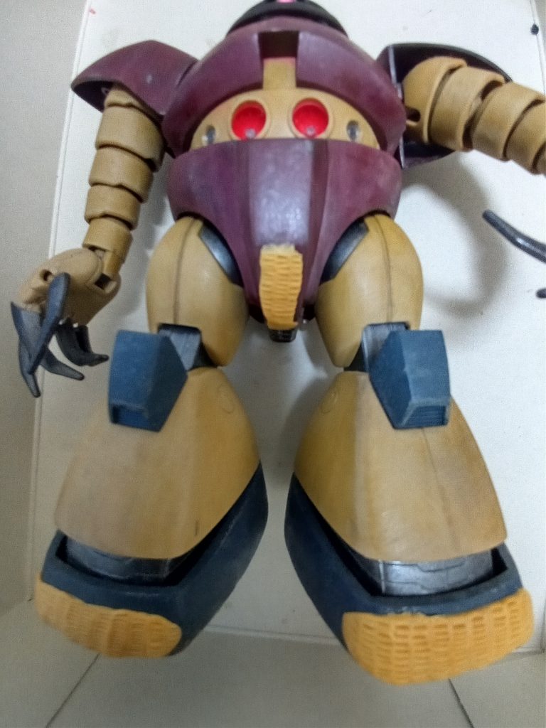かなり昔に作成したゴックさんをリメイクしようと思います。当時覚えたてのダメージ表現やリアルタッチマーカーでウェザリングっぽいことをしていたみたいです。それとモノアイも可動化させてたり頑張っていたみたいですなあ。