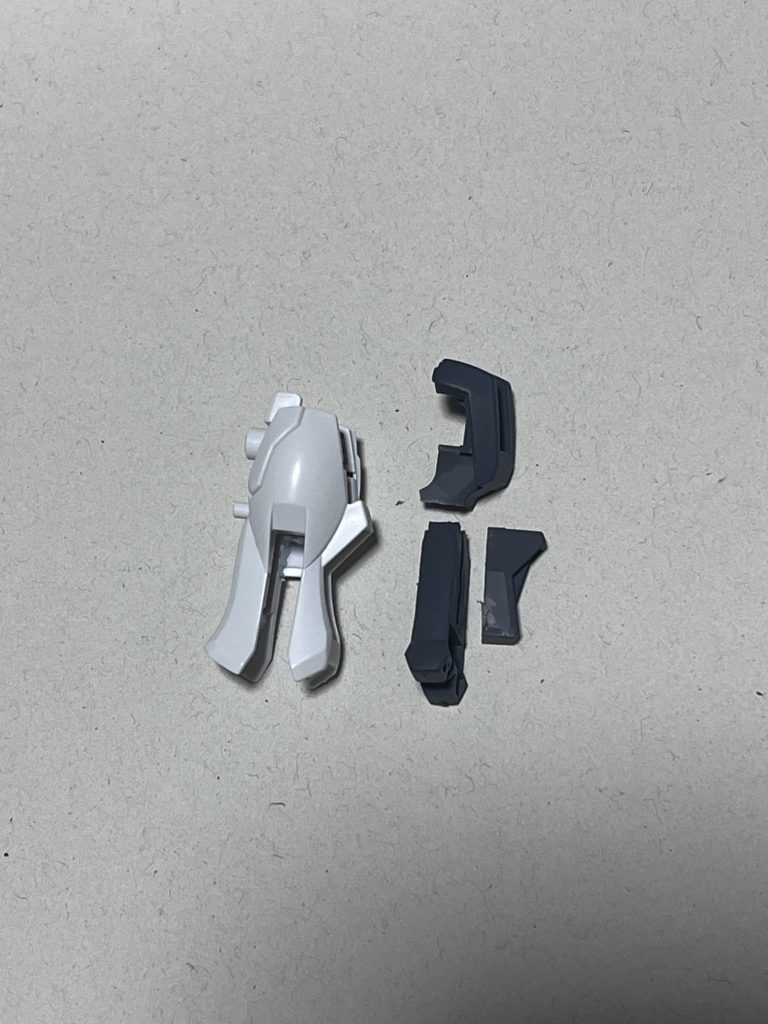 とりあえず、ふくらはぎ?部にだけ合わせ目できるっぽいので、合わせ目消して中に入るフレーム形状の部品を3分割にしてあとはめ加工しました。