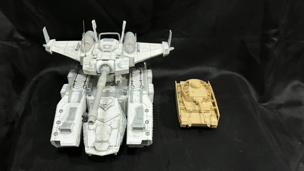 ああ、そうか、よんぱちなんですね。これはMSと絡められない・・・と思ったらメガサイズがありましたね。いや、でもほんとデカいですね。マゼラって。通常戦車と並べると凄くよく分かります。