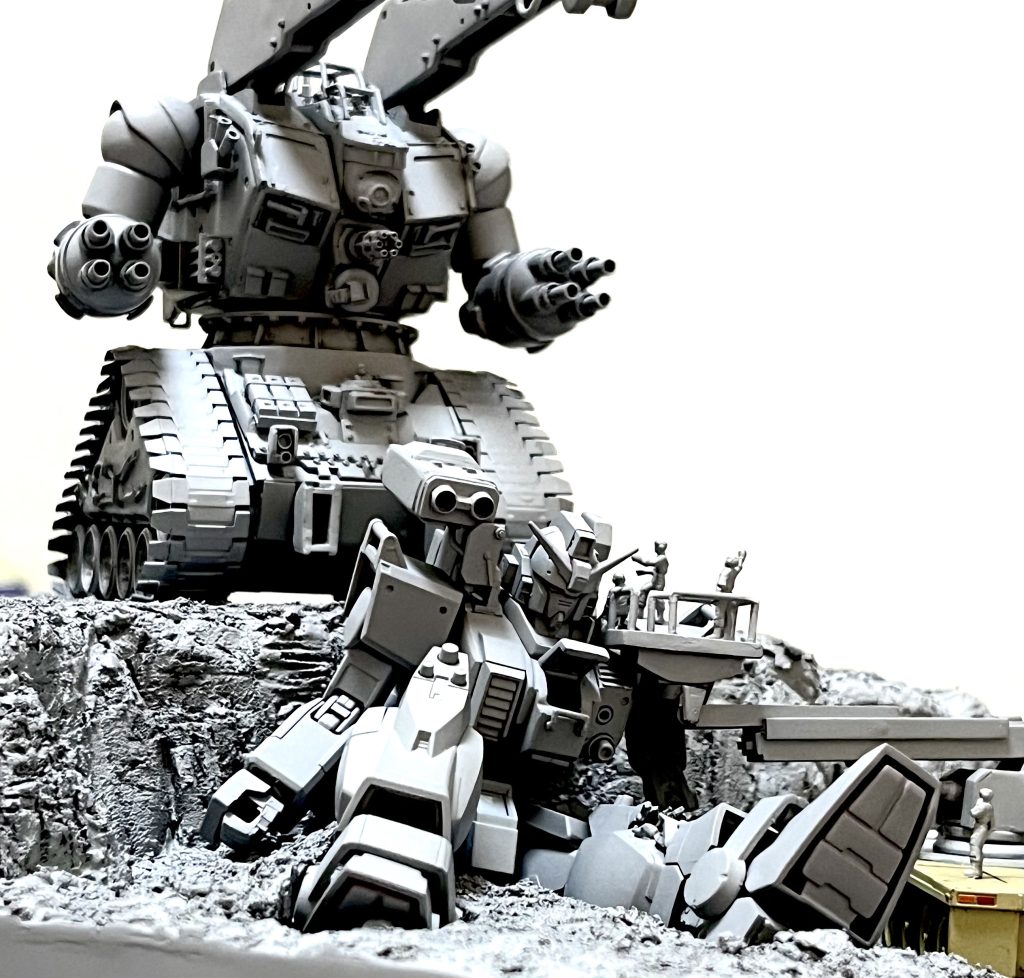 ありがとうございます(╹◡╹)好きなキャラの一つです。ジオラマ作ってる時にガンタンクの足元見てたら、ふとスターウォーズのこの情景が頭に浮かびました。サンドクローラー並の巨体かと思いますので、この演出はやってみたいですね(*^^*)