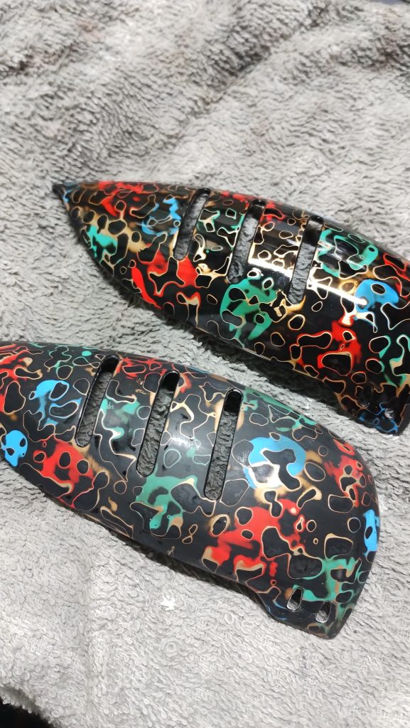 キャンディレッドにクリア3回掛け、ようやく艶が出た感じです。