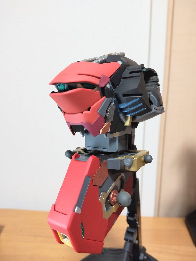 胸に開閉ギミックがあって、 メタリックグリーンを塗ったら、モノアイぽくなりました😆。