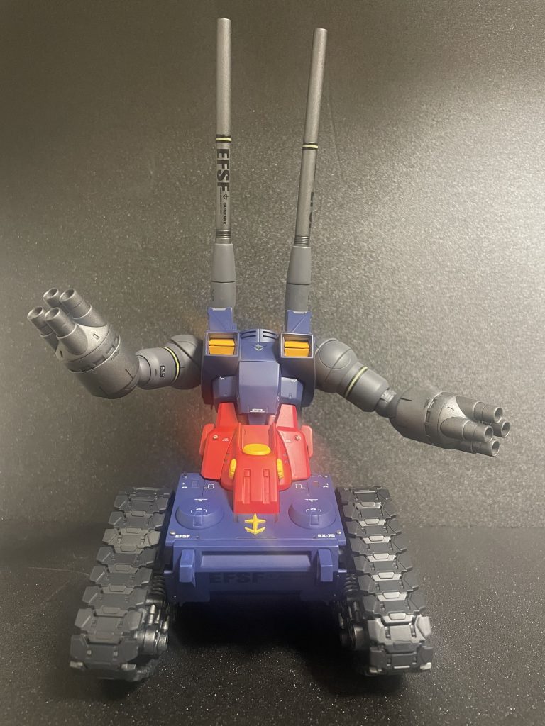 以前作ったガンタンクジオラマにガンダムとガンキャノンを配置し…